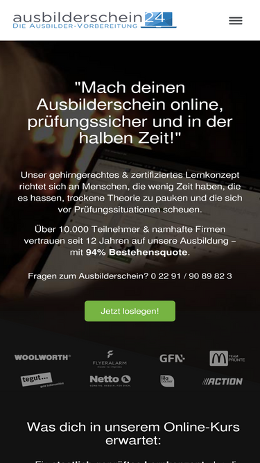 69%machen sie ihren ausbilderschein bis zu 70% schneller.trotz fulltime job oder prüfungsangst. beginnen sie jetzt mit ihrem online ausbilderschein kurs!