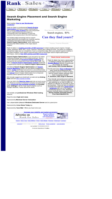 86%rank for sales is a canadian seo company and a search engine placement, search engine marketing, search engine optimization and search engine positioning firm