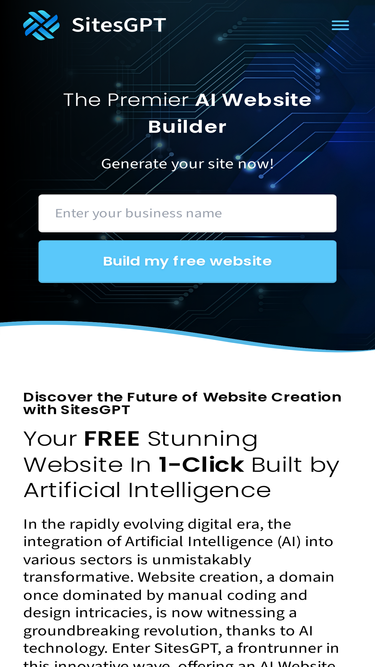 87%discover the future of website creation with sitesgpt, the premier site gpt ai website builder utilizing ai technology. start building your site today!
