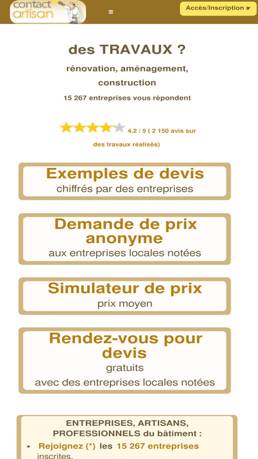 100%demandez anonymement des prix aux entreprises proches ou rencontrez-les. outil de calcul de devis de travaux en ligne et nombreux exemples.