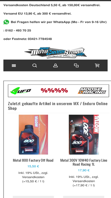 Les cinq autres concurrents du top 10 sont mxc.de, louis.de, ktmpowershop.de, oneal.eu et fc-moto.de.