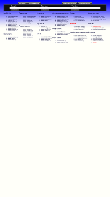 86%575 это лучшая стартовая страница, где собраны полезные сайты, которые необходимы любому пользователю сети интернет.