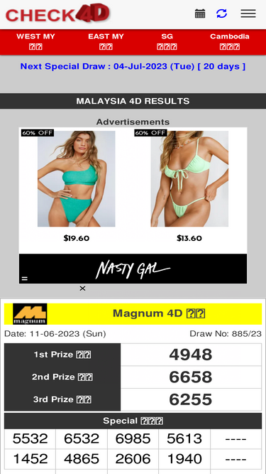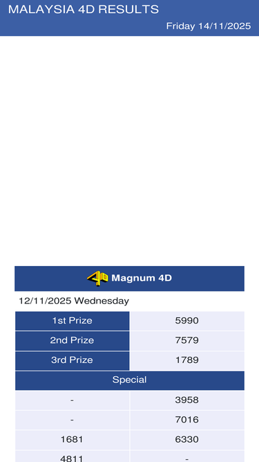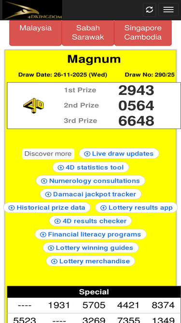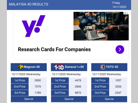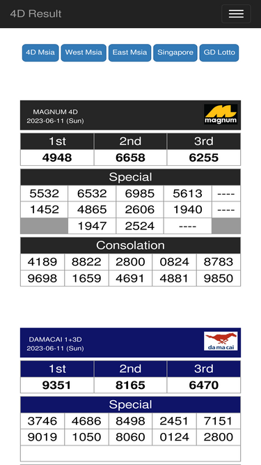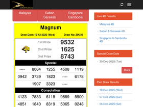 98%latest live 4d results for magnum 4d, sports toto 4d, damacai 1+3d, diriwan 88 lotto 4d, sarawak special cash sweep 4d, stc 4d, singapore pools 4d + toto