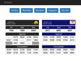 90%Check 4D results live. Magnum, 4D Toto, Damacai 4D result, Sabah 88 Lotto 4D, Sarawak Special Cash Sweep 4D, STC 4D, Singapore Pools 4D. Keputusan Hari Ini 4D in Sabah, Sarawak, Malaysia.