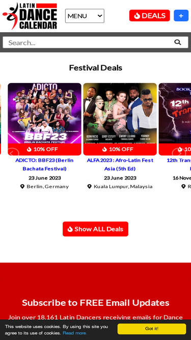 79%the place to find latin dancing classes, events, festivals, workshops & more. come join the thousands of people already using latin dance calendar.