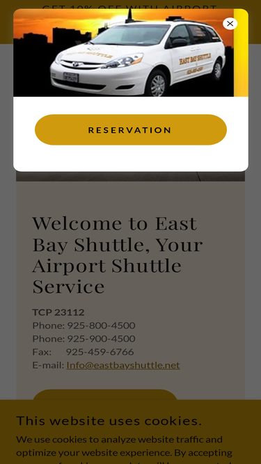 73%TCP 23112 Phone: 925-800-4500 Phone: 925-900-4500 Fax: 925-459-6766 E-mail: Info@eastbayshuttle.net