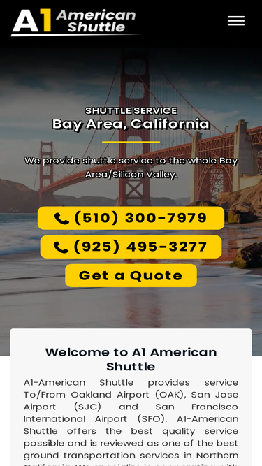 100%a1-american shuttle provides airport shuttle to san jose, san francisco and oakland airports. get airport shuttle transportation from all major cities to sfo, oak, sjc airports.