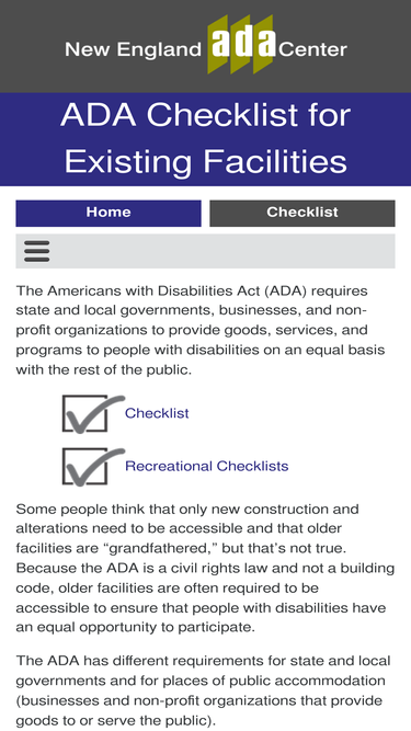 90%the ada checklists for existing facilities are used to conduct accessibility surveys for compliance with the americans with disabilities act (ada).