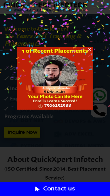 95%QuickXpert Infotech is the most leading Training & Placement Company located in Thane, delivering classroom & online training across India and World