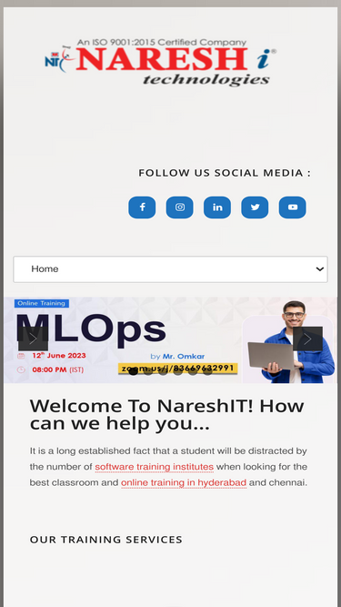 77%NareshIT is the Best Software Training Institute for Java, C#.NET, ASP.NET, Oracle, Testing Tools, Silverlight, Linq, SQL Server, Selenium, Android, iPhone in Hyderabad and Chennai, India which provides online and classroom training classes.