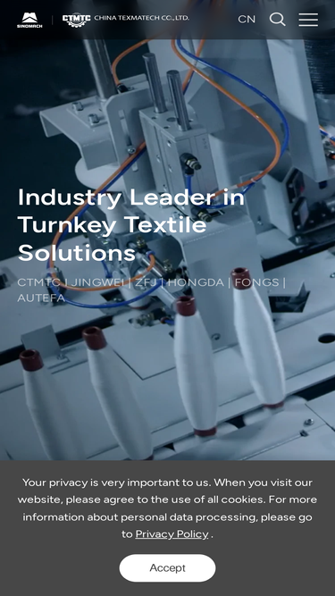 100%China Texmatech Co.. Ltd.(CTMTC), founded in 1984, is the largest professional import and export enterprise inthe field of textile machinery in China.