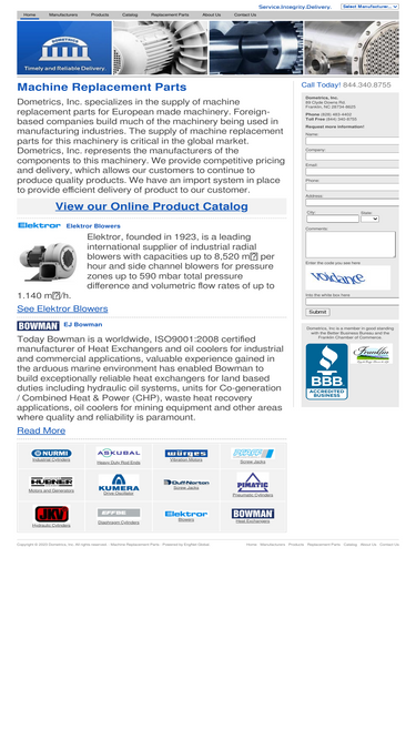 100%dometrics specializes in the supply of machine replacement parts for european made machinery. elektror blowers, askubal rod ends, bowman heat exchangers.