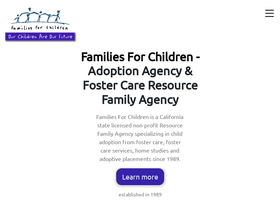 91%families for children is a california state licensed non-profit resource family agency specializing in child adoption from foster care, foster care services, home studies and adoptive placements since 1989. our mission is to provide quality short term foster care and permanent adoptive homes for california children in foster care.