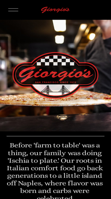 100%Giorgio's Pizza is a family run pizza and Italian restaurant located in the Richmond District of San Francisco. Serving customers for over 50 years. Pizzas, Pasta, Sandwiches, Salads and More! Located at 151 Clement St., corner of 3rd and Clement. Phone: 415-668-1266