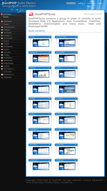 100%group of excellent php ui controls: php ajax framework, php treeview, php slidemenu, php autocomplete and many more controls... view demo now!
