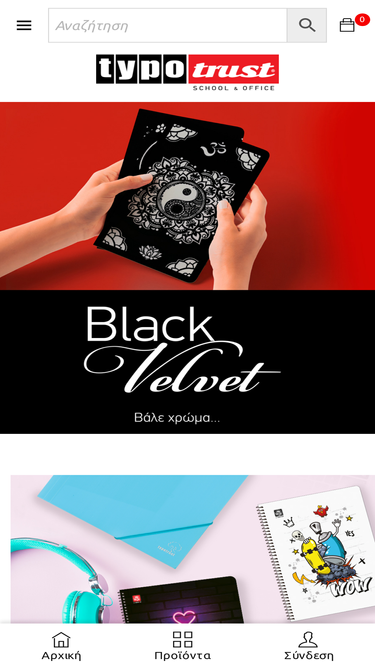 65%Σχολείο Στο ταξίδι της δημιουργίας η Typotrust ειναι ο σύμμαχος κάθε μαθητή Πατήστε εδώ Γραφείο Όλα τα απαραίτητα εργαλεία για την οργάνωση του χώρου εργασίας και την αρχειοθέτηση των εγγράφων Πατήστε εδώ Ανακαλύψτε τα προϊόντα Typotrust Αναγνωρίζοντας τις διαφορετικές ανάγκες για τον καθένα, δημιουργήσαμε μια μεγάλη γκάμα με ξεχωριστές κατηγορίες προϊόντων για να βρείς αυτη