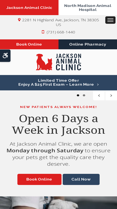 78%jackson animal clinic is a full-service veterinary hospital that offers comprehensive services for pets in jackson. we're open 6 days a week - call or book online.