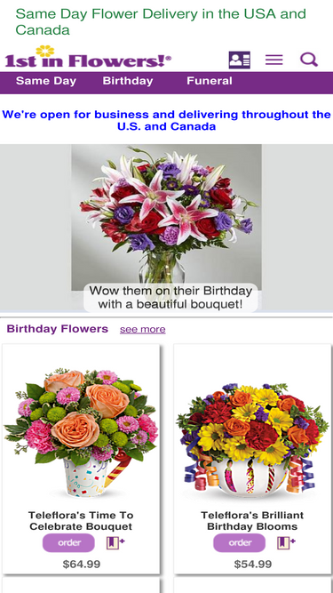 94%Same day flower delivery in the US and Canada. Beautiful flowers, reasonable prices, and reliable service. We offer flower delivery to over 150 countries including the USA, Canada, and UK, with flower arrangements professionally designed and delivered by local florists.