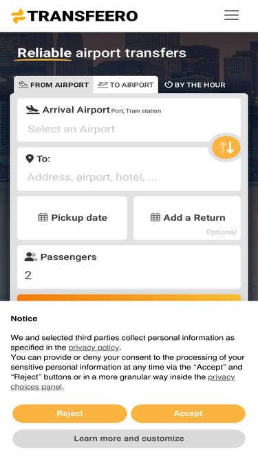80%Experience hassle-free airport transfers with Transfeero. Our reliable services ensure a smooth and comfortable journey. Book now!