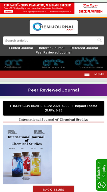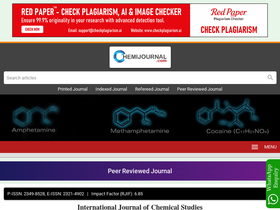 60%International Journal of Chemical Studies, is a chemistry journal covers the field of Organic Chemistry, Physical Chemistry, Phytochemical, Biochemistry, Medicinal Chemistry and Analytical Chemistry. This journal provides the research ground for the researchers and provides them proper support.