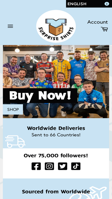 68%Introducing the Surprise Shirts Box - perfect for any football fan! In your box, you'll find a brand new, authentic football shirt from any club or nation around the world (typically from within the last 10 years). You'll also find an info card detailing the story behind the shirt.