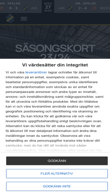 88%Med ett säsongskort i Behrn Arena är du alltid garanterad din plats till det mest förmånliga priset. Säsongen 2025/26 ingår alla matcher i SHL:s grundserie samt flera andra förmåner.