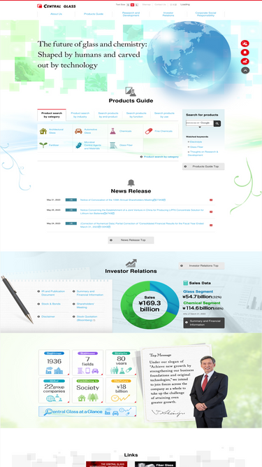89%This is the Energy Materials page. Central Glass Co., Ltd. is developing our business in the fields of Chemicals, Architectural Glass, Automotive Glass, Electronic Materials, Energy Materials, Medi-Chemicals, Applied Chemicals, Glass Fiber, and Fertilizers.