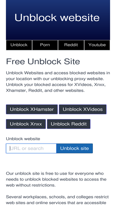 85%unblock websites and access blocked websites in your location with our unblocking proxy website. unblock your blocked access for xvideos, xnxx, xhamster, reddit, and other websites.
