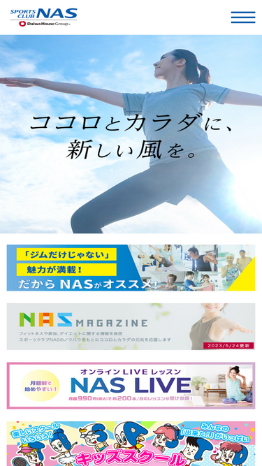 82%スポーツジム・フィットネスクラブをお探しなら【スポーツクラブNAS】。ヨガなどのスタジオプログラムやプールプログラムも充実。テニススクール、スイミングスクール、キッズ(子供)スクールも。日本全国の各店舗へお越しください。