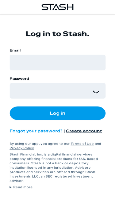 100%welcome. log in to stash to access your cash and investments.