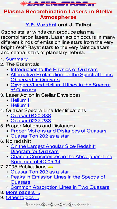65%plasma recombination lasers in rapidly cooled stellar atmospheres. astrophysical observations and laboratory results confirm collisional radiative simulation predictions. quasars are stars in our galaxy.