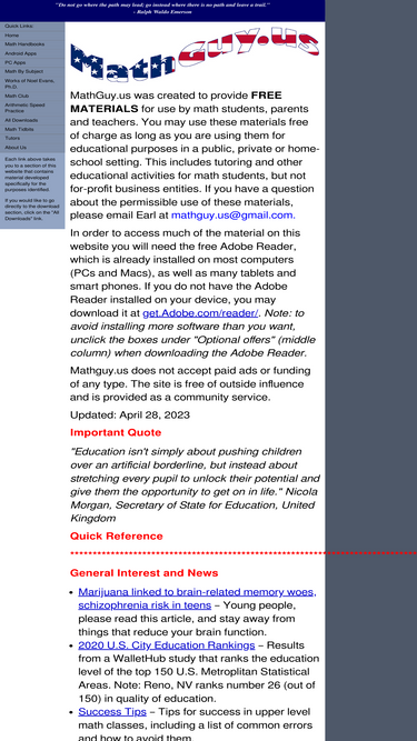 free math resources for students, parents and teachers