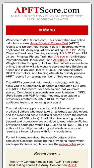 83%calculates and scores apft results for multiple soldiers. supports: da 705 export, alternate aerobic events, height/weight, profiles, extended scale, and more.