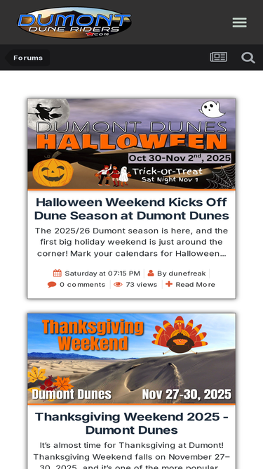99%The 2025/26 Dumont season is here, and the first big holiday weekend is just around the corner! Mark your calendars for Halloween weekend, October 30 – November 2, 2025. As always, Halloween is one of the most popular and fun weekends at Dumont. Camps fill up, costumes come out, and the dunes lig...