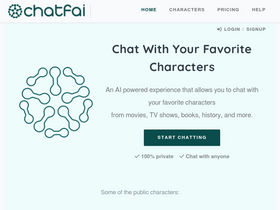 100%discover and chat with your favorite ai characters from movies, tv shows, books, history, and more. chatfai is an ai powered experience that allows you to chat with your favorite characters.