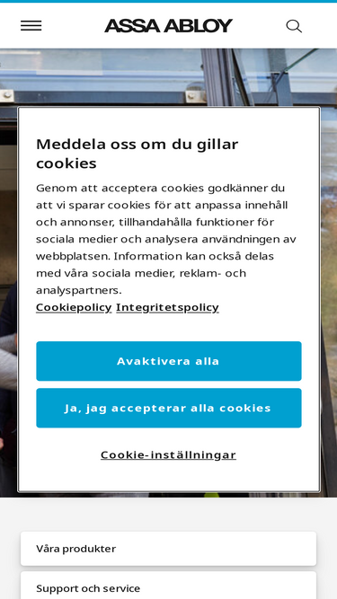 89%ASSA ABLOY är världsledande inom lås- och dörrlösningar som uppfyller krav på trygghet, säkerhet och användarvänlighet – oavsett bransch. Vi tar er säkerhetslösning på största allvar.