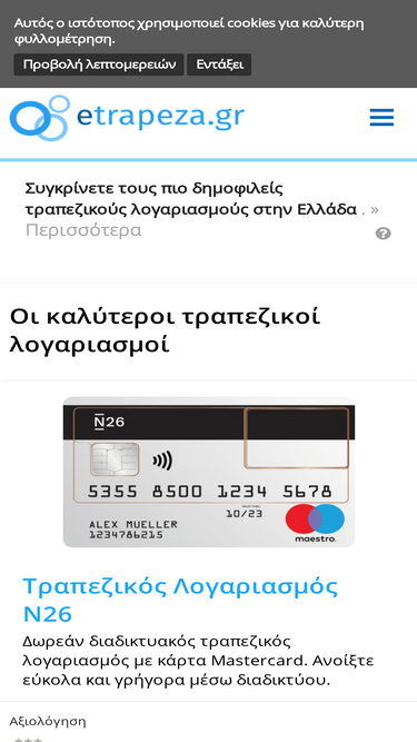 συγκρίνετε τραπεζικά προιόντα με μια ματιά. βρείτε τον τραπεζικό λογαριασμό που σας ταιριάζει και κάνετε άμεσα την αίτηση σας διαδικτυακά.