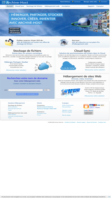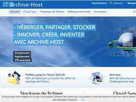 87%archive-host fournit un service unique alliant hébergement de fichiers et de sites web. héberger, partager, stocker vos fichiers, musique, images, vidéos en ligne avec rapidité, simplicité et efficacité. héberger et diffuser votre site au monde entier. nous vous accompagnons dans votre évolution, le tout à l'écoute de vos besoins.