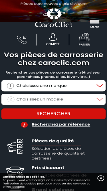 88%Page de contact de Caroclic.com, site de vente en ligne de pièces de carrosserie auto, avec livraison en 24 ou 48 heures.