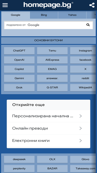 81%homepage.bg - твоята начална страница, персонализирани лични бутони с линкове, достъп до rss-канали, радио.