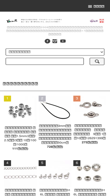 28%天然石ビーズパワーストーン卸販売、粒のバラ売り、アクセサリーパーツ金具、ジュエリー材料パーツ、k金ゴールド、シルバー925、サージカルステンレス、ピアスパーツ、メタルビーズチャームパーツ、ゴム紐、ろう引き糸、本革レザーコード、ワイヤー、ネックレスチェーン、手芸材料/youme源(夢源)ゆめゲン福岡2008通販スタート