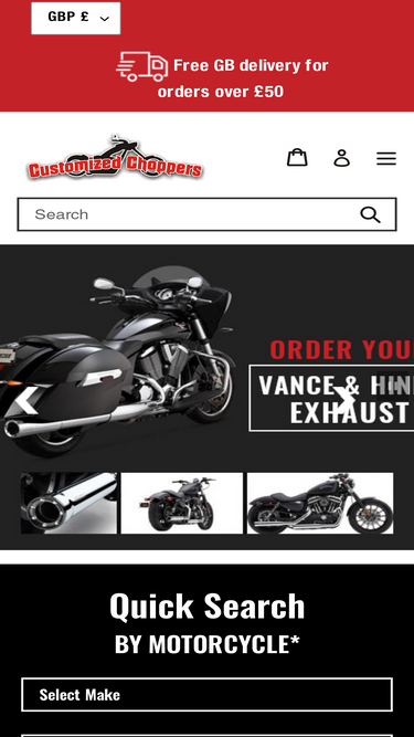 98%Specializing in custom motorcycle parts and accessories for Chopper and Bobber motorcycles. Aftermarket parts for Harley Davidson Sportster, Triumph Bonneville, Yamaha XS 650 and many more. FREE SHIPPING ON ALL US ORDERS OVER $99!