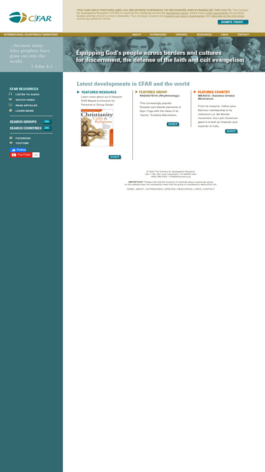 100%equipping god's people across borders and cultures for discernment, the defense of the faith and cult evangelism.