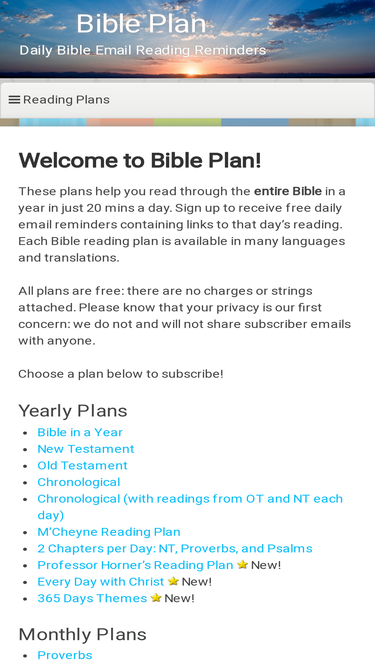 helping you read through the entire bible in a year. sign up to receive free daily email reminders containing one or more links to that day's reading.