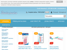 78%Internetinė burnos higienos, dantų bei dantenų priežiūros parduotuvė Dantupastos.lt: įvairios dantų pastos (balinančios, ekologiškos, ajurvedinės, priešuždegiminės, nuo parodontozės, vaikiškos, paaugliams, remineralizuojančios, be mentolio, nuo apnašų), dantų šepetėliai vaikams ir suaugusiems, vieno danties šepetėliai, tarpdančių šepetėliai, priemonės dantenoms, dantų apnašas indikuojančios priemonės, burnos skalikliai ir skalavimo skysčiai, liežuvio grandikliai, burnos irigatoriai, dantų siūlai, dantų milteliai, dantų emalį atstatantys kremai, dantų balinimo sistemos - viskas rūpestingai dantų priežiūrai. Išsaugokite gražią šypseną!