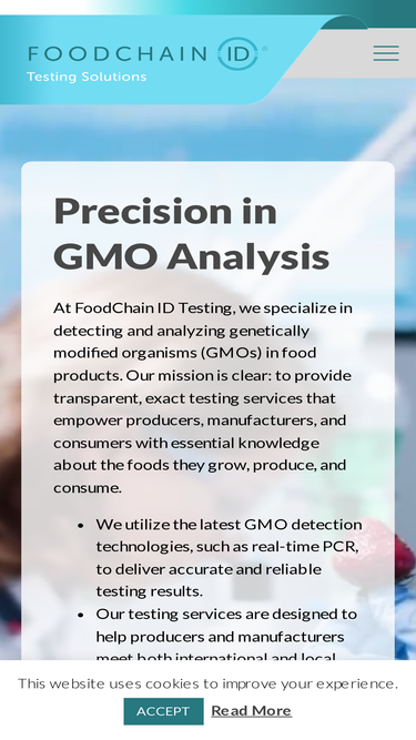 Discover FoodChain ID Testing's GMO analysis to get the accurate, regulatory-aligned results you need. Request your quote today and partner with a leader in GMO testing excellence.