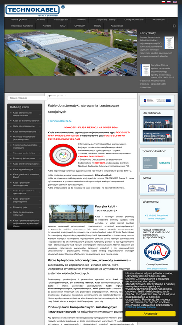 78%Posiadamy w swojej ofercie: przewody sterownicze do systemów iskrobezpiecznych PARTRONIC IB, kable do transmisji danych PARBUS, kable przekształtnikowe, elektroenergetyczne, przewody do linii napowietrznych, przewody elektroenergetyczne gołe, przewody samochodowe, przewody jezdne profilowane, kable bezpieczne ognioodporne.