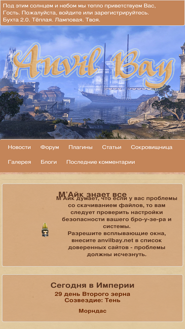 77%anvil bay - сайт посвящен играм сери tes (the elder scrolls). база плагинов содержит только самые качественные локализации.