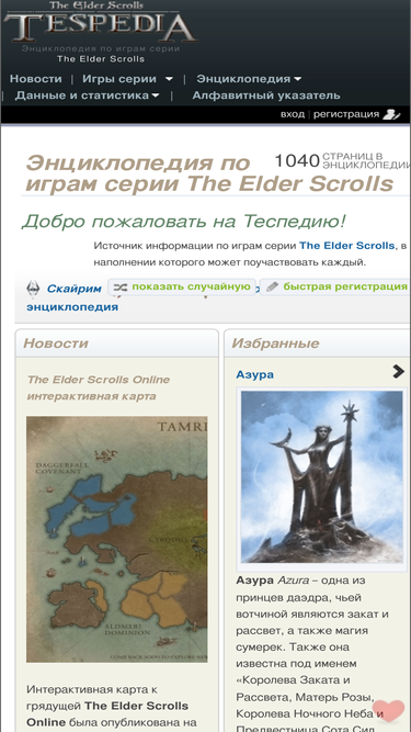 74%весь мир древних свитков на русском языке, в наполнении которого может поучаствовать каждый. скайрим, обливион, морровинд и другие игры серии подробно освещаются на теспедии.