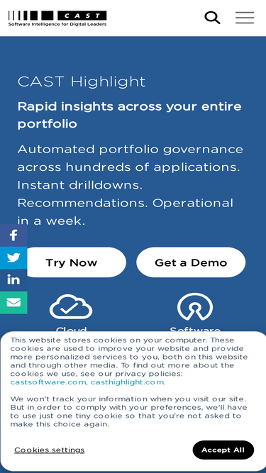 Software mapping & intelligence | CAST Highlight shows CIOs big picture to govern software portfolios. CAST Imaging lets architects see inside applications.